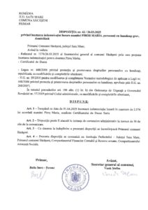 Dispozitia Nr 62 26 03 2025 Incetarea Indemnizatiei Lunare Al Doamnei Piros Maria